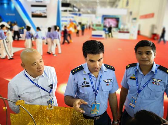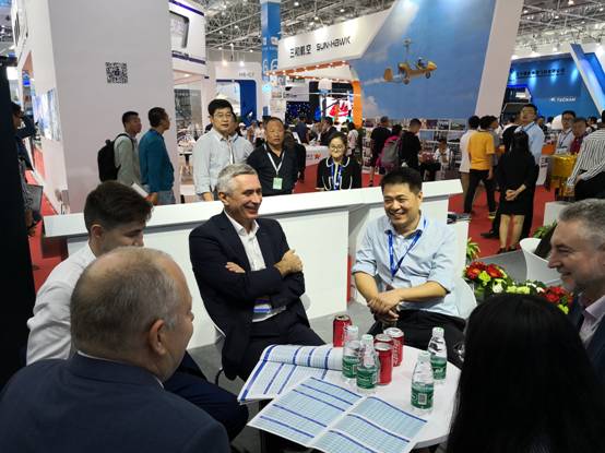 更有空中客车公司领导一行参观完展位后,莅临公司参观交流,空中客车公司领导对公司宇航电子产品、卫星大数据服务表示浓厚的兴趣,并表达后续相关合作意向。