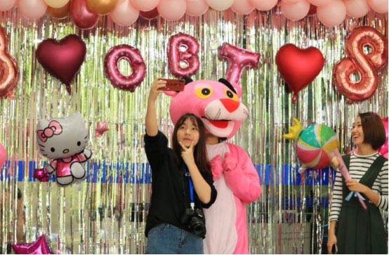 空气中洋溢着节日的气息,女神们更是个个颜如朝露、笑靥如花,和调皮的“顽皮豹”合影互动,留下属于自己和欧比特之间的回忆。