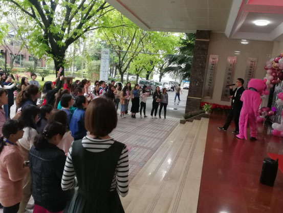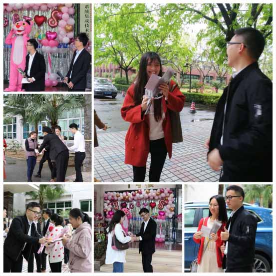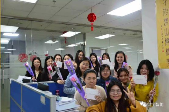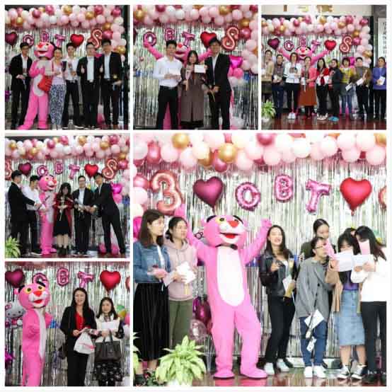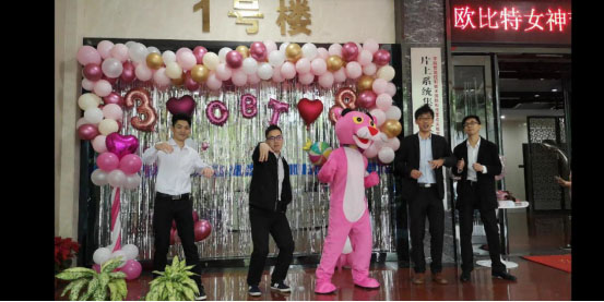 在这个专属的少女时刻,1号楼一改往日严肃,换上了小仙女春装,满眼的马卡龙气球,装扮满满的少女心。帅气的男同事手持鲜花,祝每一位在欧比特辛勤工作女神们节日快乐。