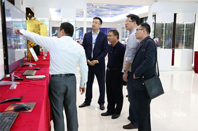 颜总引导来访嘉宾到公司展厅的宇航电子业务展区,公司副总经理龚永红为来访嘉宾详细介绍了公司发展历程、主营业务、技术产品、荣誉资质及公司SoC、SiP、EMBC等代表产品的基本情况,双方通过问答交流,深入探讨了产品相关信息,包括型号、材质、核心技术、应用领域等,肖总一行对公司拥有的技术实力高度赞许,充分肯定公司在国内宇航核心元器件技术的领先地位。