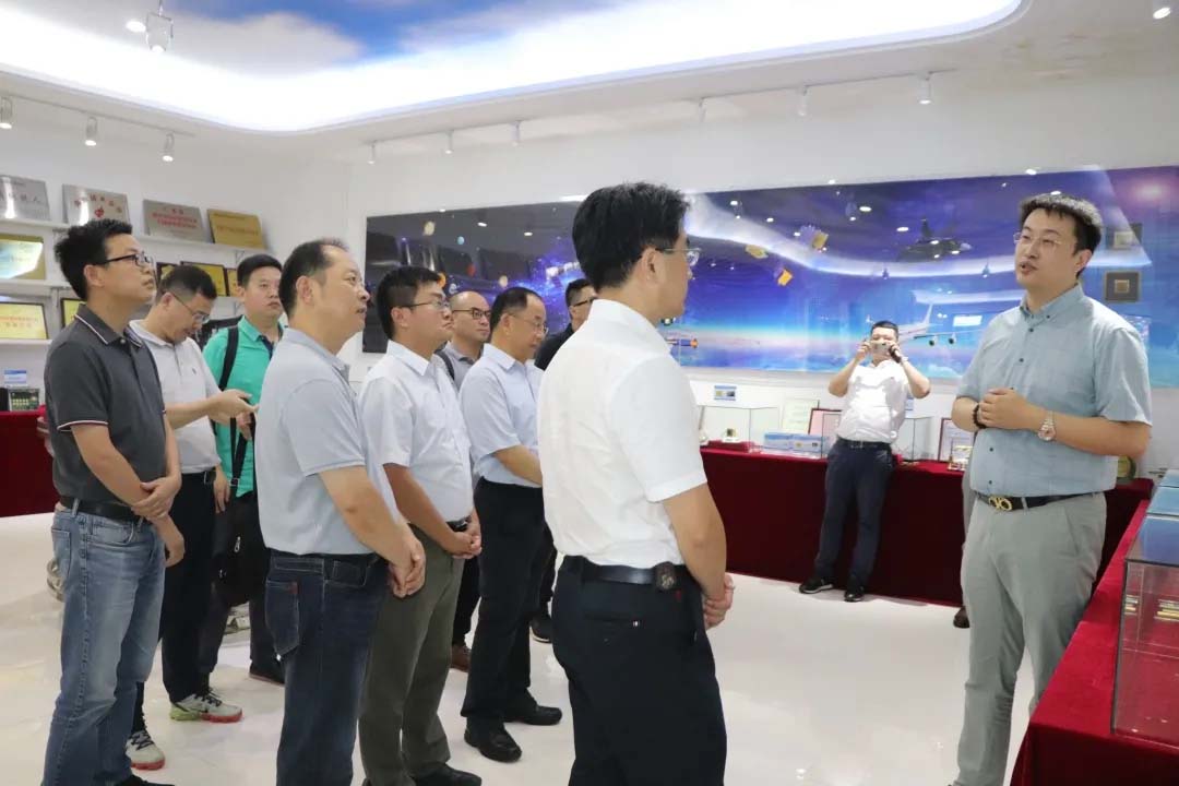 公司总经理颜志宇为来访领导介绍了公司发展历程、各业务板块、产品技术、荣誉资质等情况,并对公司的SoC、SiP、EMBC等宇航电子产品、卫星星座项目及产品、人工智能技术产品等进行了详细的解说。